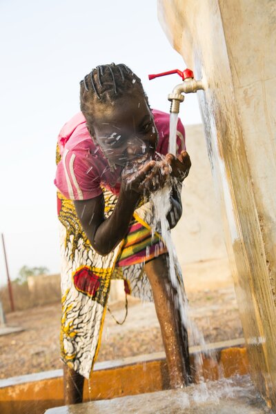 Djakaridia, her eldest son, pushes a jerry can under the tap and casually leans on the pump, filling up the can in no time. Meanwhile, Nani, his 7-year-old sister, is playing with some other girls, and Mamou is chatting with the women there. For a year and a half now, fetching water in Faradiélé has actually become almost a pleasure.